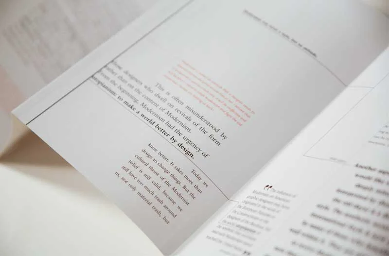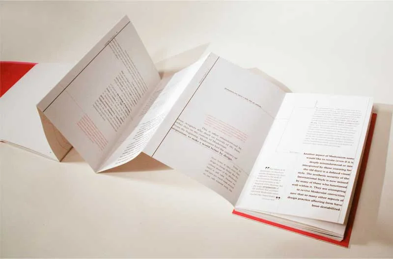 “From Modernism to Post-Modernism” is a the other side of the book “From Post-Modernism to Modernism”. This book also is about the three different articles, “Long Live Modernism” by Massimo Vignelli, “Ornament, A Modern Perspective” by James Trilling and “On Overcoming Modernism” by Lorraine Wild. The main article is “Long Live Modernism” by Massimo Vignelli and “On Overcoming Modernism” by Lorraine Wild. The main articles are placed on the left page and On the right the selected part of the other two articles. Lines represent the writer of that article, So the reader don’t get lost who’s talking.